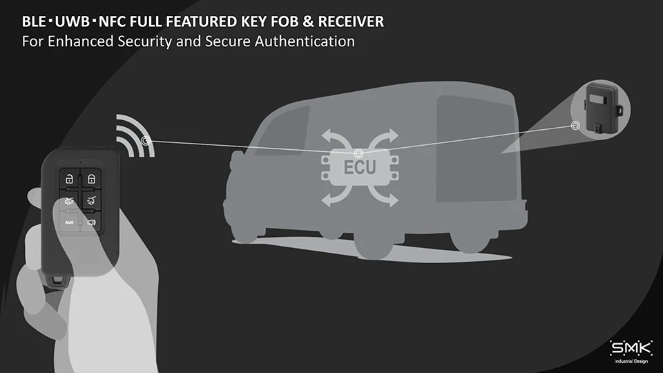 SMK’s Passive Keyless Entry solution is a standard, off-the-shelf key fob and receiver module package with the following features: