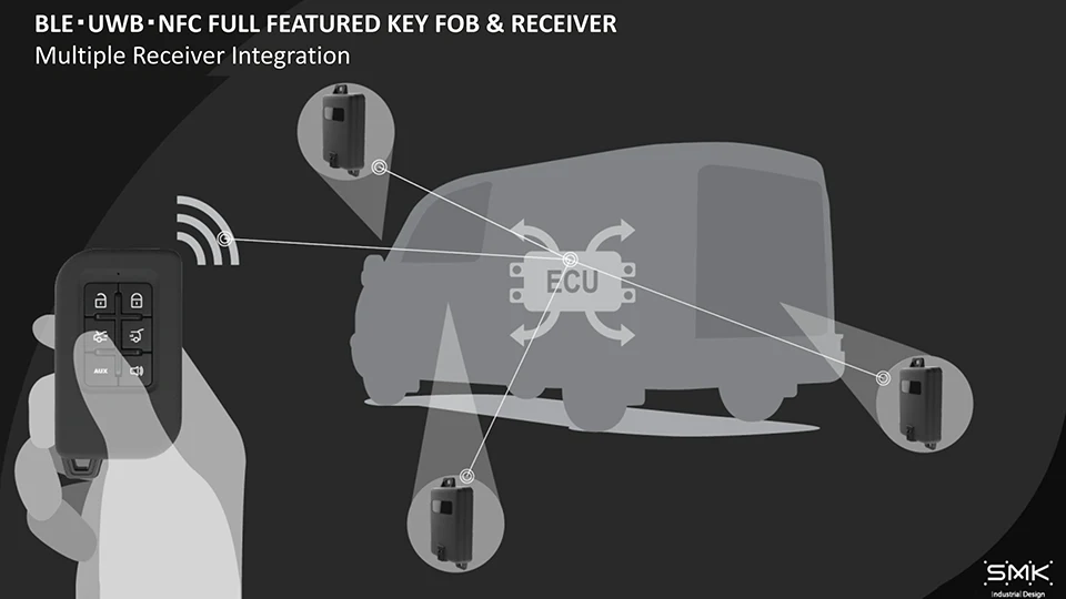 Full Featured BLE, NFC, UWB Key Fob & Receiver Remote Access