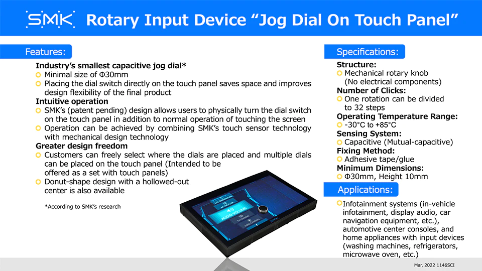 Rotary Input Device "Jog Dial On Touch Panel" Product News