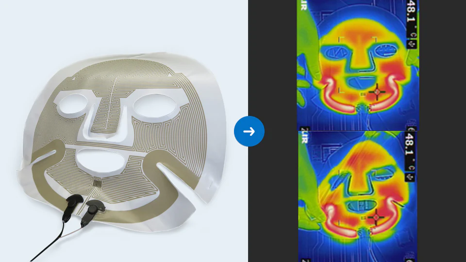 By using a flexible substrate, the product has excellent stretchability and can wrap well around objects, allowing stable heating performance even for complex shapes.