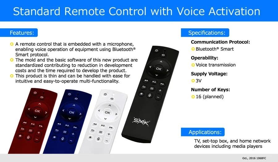 Standard Remote Control with Voice Activation SMK AmericaNovember 4, 2016 Facebook0 Twitter LinkedIn0 0 Likes